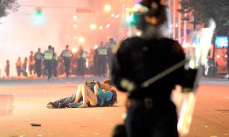 Just like that. Breath mingling. Skin warmed against skin while the sky falls. The systems are breaking, the earth groans, and still we touch. They told us collapse means only ending, but we make it an opening.